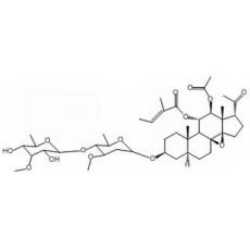 英文别名:Pregnan-20-one, 12-(acetyloxy)-3-[[2,6-dideoxy-4-O-(6-deoxy-3-O-methyl-β-D-allopyranosyl)-3-O-methyl-β-D-arabino-hexopyranosyl]oxy]-8,14-epoxy-11-[[(2E)-2-methyl-1-oxo-2-butenyl]oxy]-, (3β,5α,11α,12β,14β,17α)- (9CI); (3β,5α,11α,12β,14β,17α)-12-(Acetyloxy)-3-