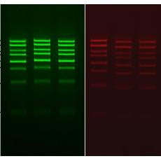 3. 灵敏度跟常规方法相当,EB 高 200 倍,能检测到 10 ng 的 DNA 条带。
